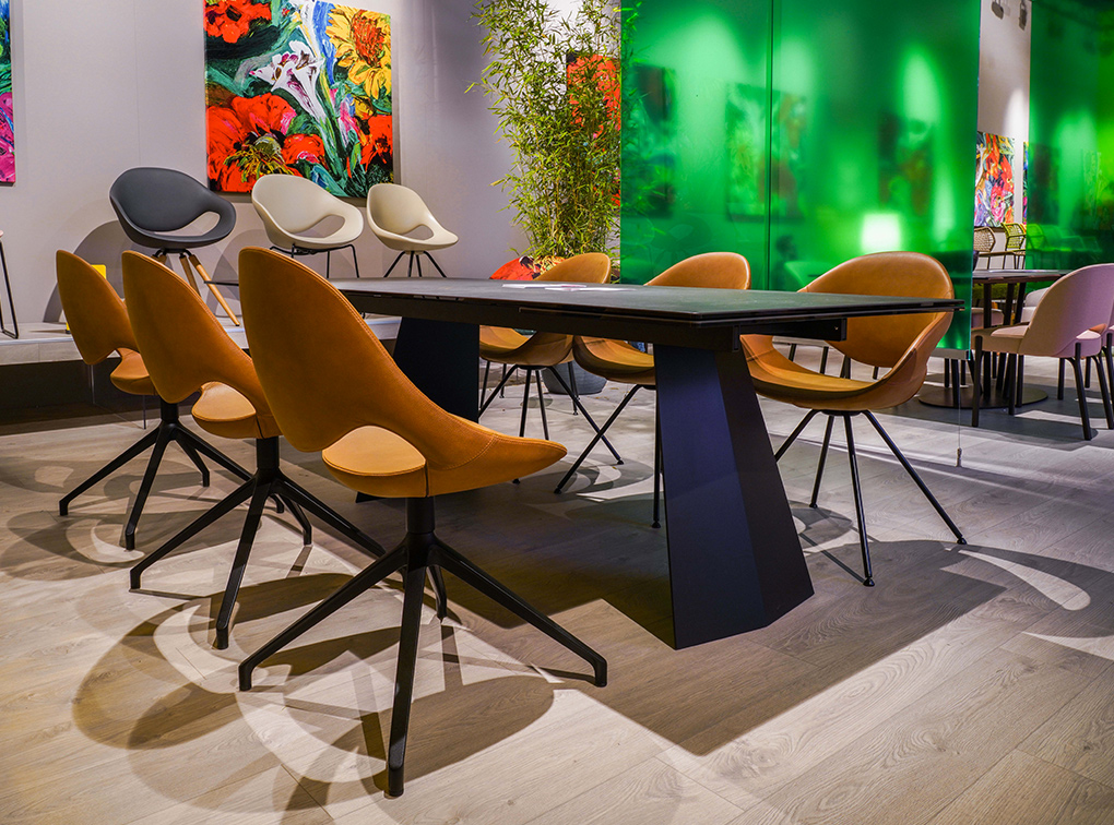 Con le sue linee invitanti conferisce allo sguardo l’accogliente sensazione di un ampio spazio intimo nel quale potersi rilassare